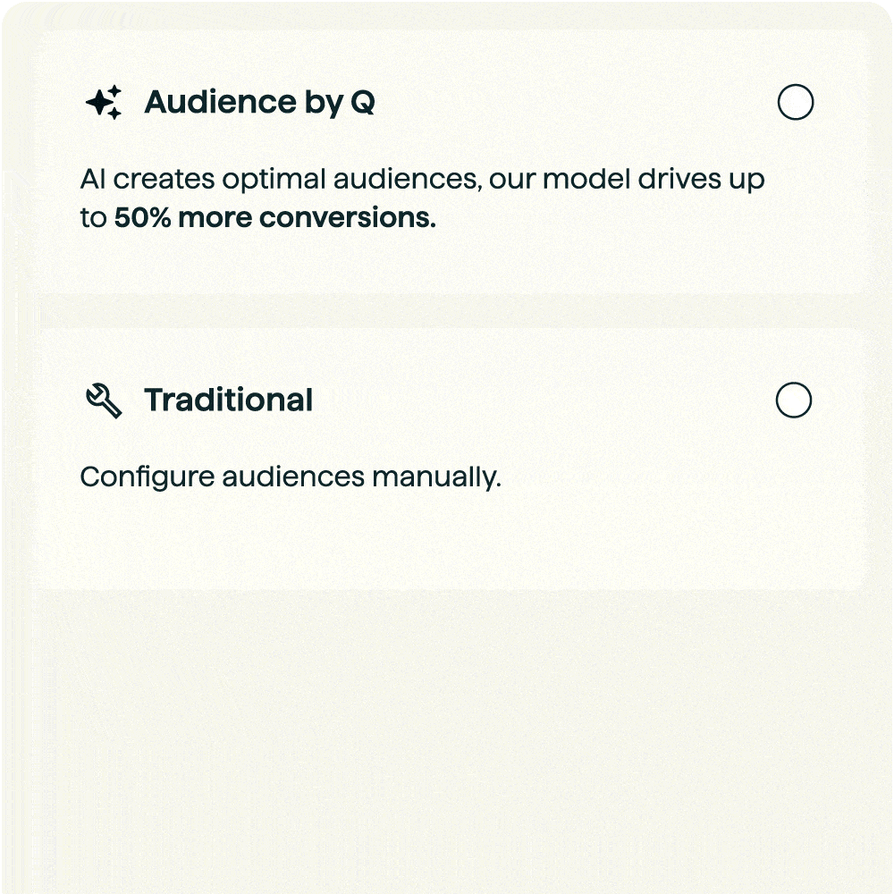 Our AI agent, Audience by Q, uncovers high-value, incremental audiences by analyzing billions of interactions to identify emerging intent signals, capturing h